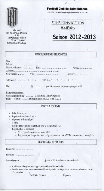 Voici les documents à rapporter signés et complétés au club pour tous nouveaux joueurs majeurs.